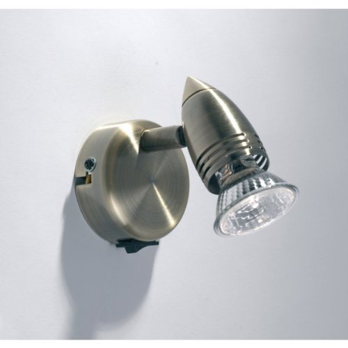 Single spotlight finished in antique brass1 x 50w GU10 mains halogen bulb (included)Adjustable headSwitchedBase diameter 7cm Projection 14cm Gemini single spotlight - antique brass Video Reviews gemini.single.spotlight.antique.brass