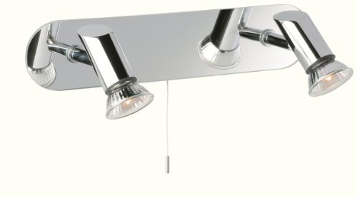 5751CH Features: -Two light wall spot light.-Marina range.-Mirror glass.-Supplied with lamps.-Supplied with switch.-Voltage: 240. Includes: -Accommodates: 2x35W GU10 bulbs (included). Color/Finish: -Chrome finish. Dimensions: -Overall dimensions: 33cm W x 14cm Ext.